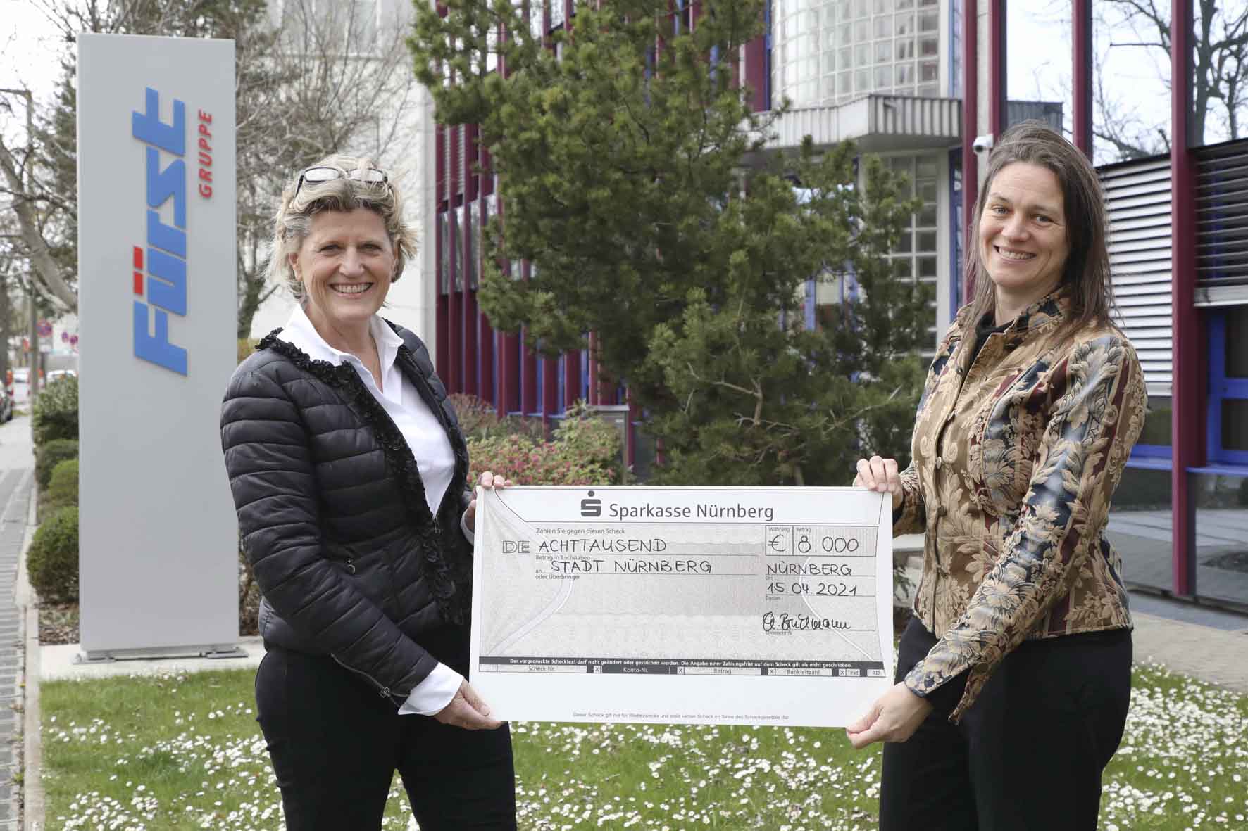 Elisabeth Ries, Referentin für Jugend, Familie und Soziales der Stadt Nürnberg, hat von Christine Bruchmann, Geschäftsführende Gesellschafterin der Fürst Gruppe eine Spende über 8 000 Euro entgegengenommen. Die Zuwendung geht an vier Projekte aus dem Jugend- und aus dem Seniorenbereich, zum Beispiel an „Jedes Kind kann Schwimmen lernen“ oder Mitsingkonzerte für Senioren. Das Engagement der Fürst Gruppe steht für die Herstellung von Chancengerechtigkeit für beide Altersgruppen.