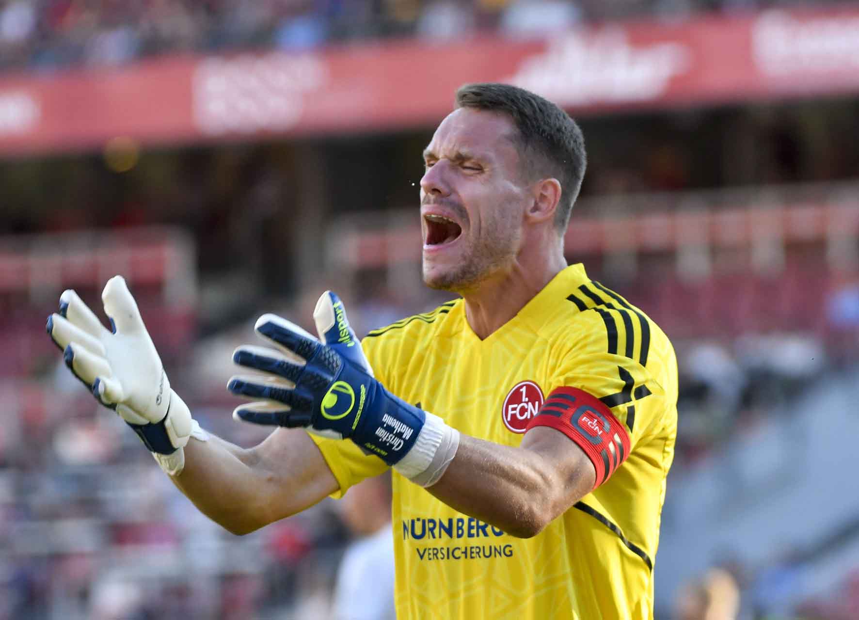 Titelfoto: Ein Bild sagt alles – Nürnbergs Torwart Christian Mathenia ist mit einer Schiedsrichterentscheidung unzufrieden.