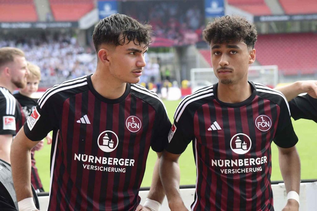 42-Can Yilmaz Uzun (FCN) mit seinem Kollegen 27- Nathaniel Brown (FCN) nach dem letzten Heimspiel für den Club und nächste Saison spielen sie gemeinsam bei Eintracht Frankfurt?